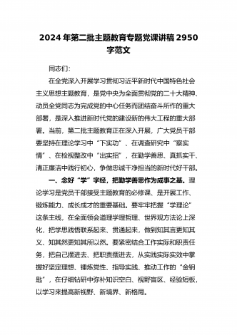 2024年党课讲稿范文:深入学习宣传贯彻党的二十大精神以高质量党建引领XX高质量发展 同志们: 按照《XX党委学习宣传贯彻党的二十大精神工作方案》整体安排部署,近段时间XX各系统、各级部门相继开展了系列宣讲活动,在全XX上下掀起了学习宣传贯彻党的二十大精神热潮。相信大家也都通过各种渠道、各种媒体学习了解了党的二十大精神,但仅仅通过一、两次学习还不够,要按照XX党委的要求,在学懂弄通做实上下功夫,坚持不断学、反复学,做到学思践悟、知行合一,指导实践、推动工作。 根据XX党委安排,作为XX学习...