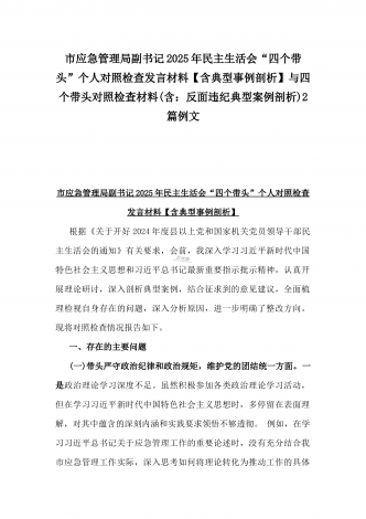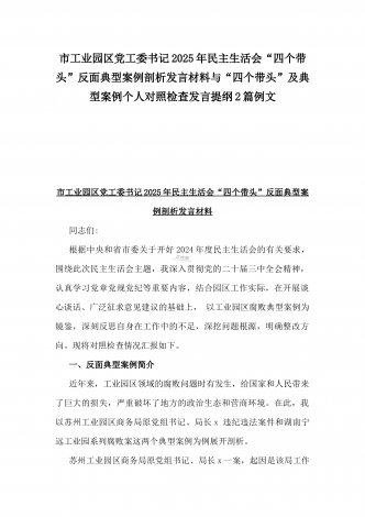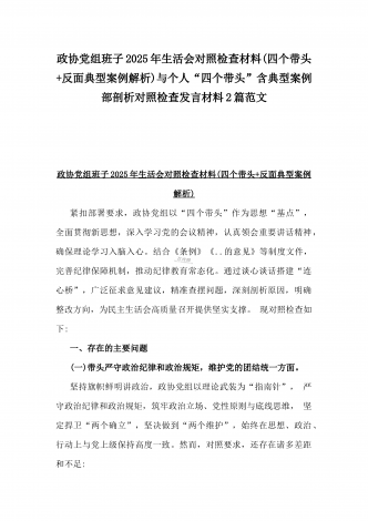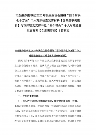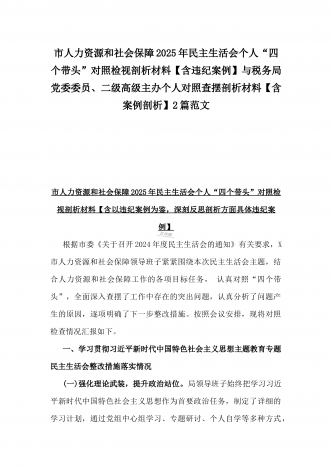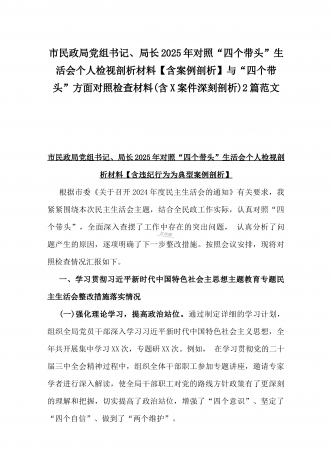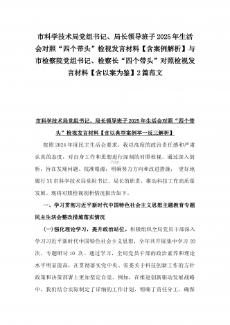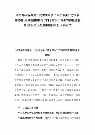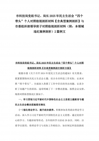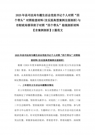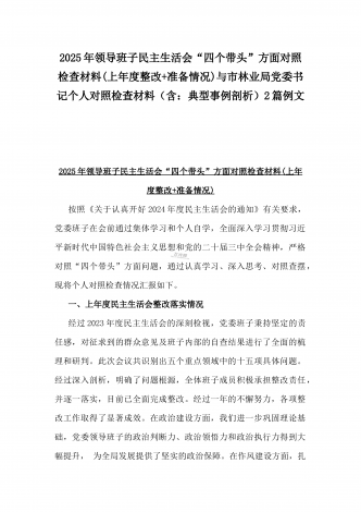县委班子2025年民主生活会“四个带头”对照检查发言材料(含意识形态)与市财政局党组书记、局长对照“四个带头”个人对照检视发言材料(含以案为鉴、以案促改促治方面)2篇例文