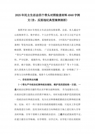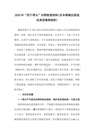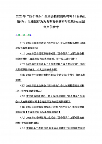 带头严守政治纪律和政治规矩,维护党的团结统一等2025年“四个带头”生活会检视剖析材料15篇稿(附:以违纪行为为典型解析案例与反思)word文