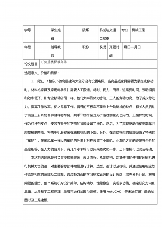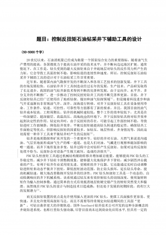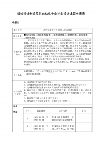 控制反扭矩井下辅助工具的设计机械设计制造及其自动化专业毕业设计课题申报表