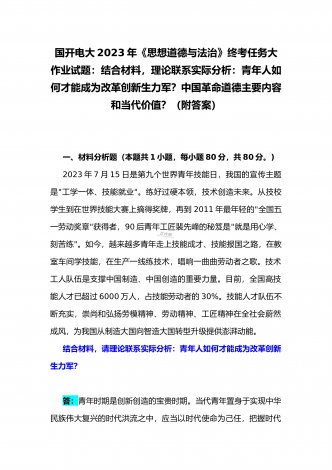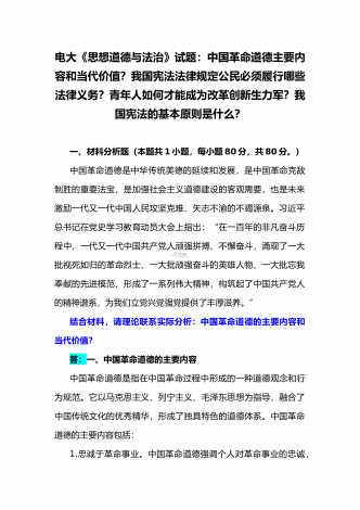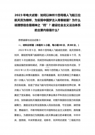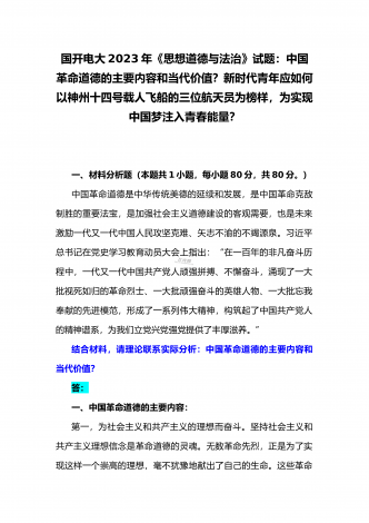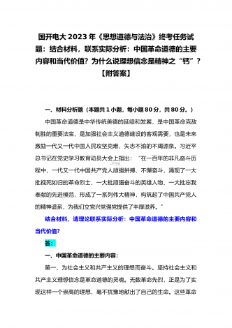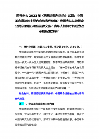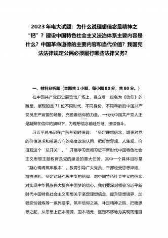 2023年电大试题:为什么说理想信念是精神之“钙”?建设中国特色社会主义法治体系主要内容是什么?中国革命道德的主要内容和当代价值?我国宪法法律规定公民必须履行哪些法律义务?