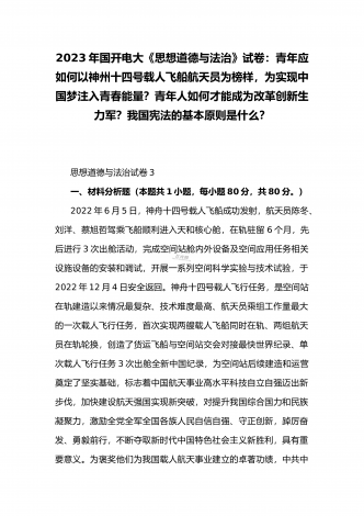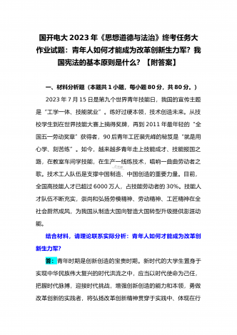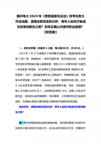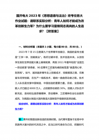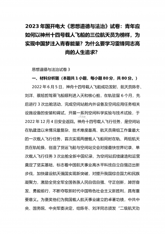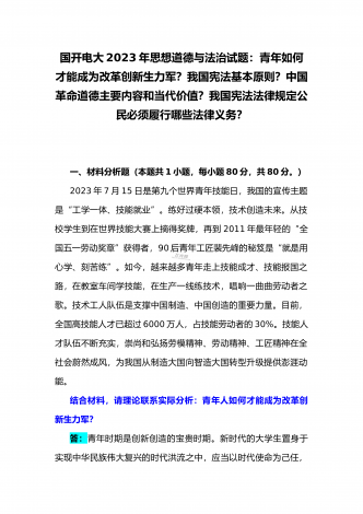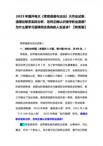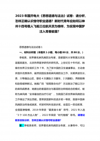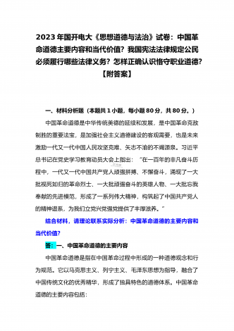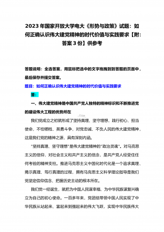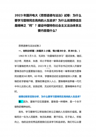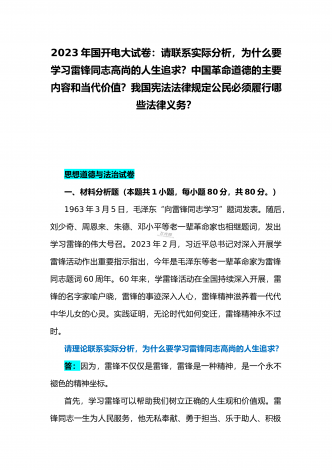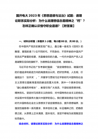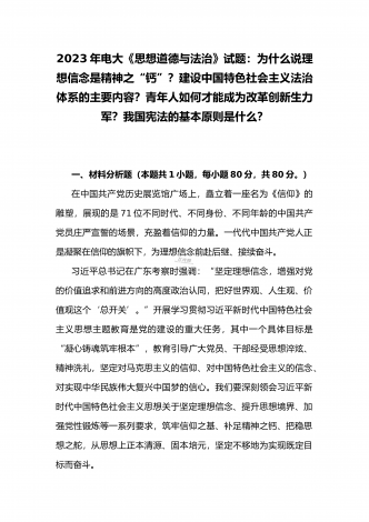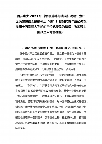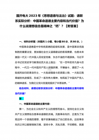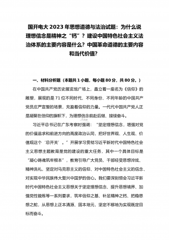 2023年电大试题:为什么说理想信念是精神之“钙”?建设中国特色社会主义法治体系主要内容是什么?中国革命道德的主要内容和当代价值?我国宪法法律规定公民必须履行哪些法律义务?一、材料分析题(本题共1小题,每小题80分,共80分。)在中国共产党历史展览馆广场上,矗立着一座名为《信仰》的雕塑,展现的是71位不同时代、不同身份、不同年龄的中国共产党员庄严宣誓的场景,充盈着信仰的力量。一代代中国共产党人正是凝聚在信仰的旗帜下,为理想信念前赴后继、接续奋斗。习近平总书记在广东考察时强调:“坚定理想信念,增强...