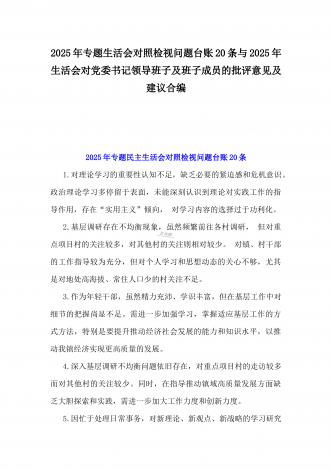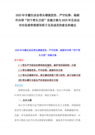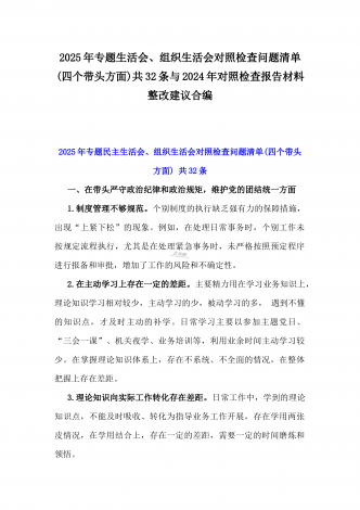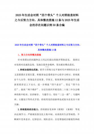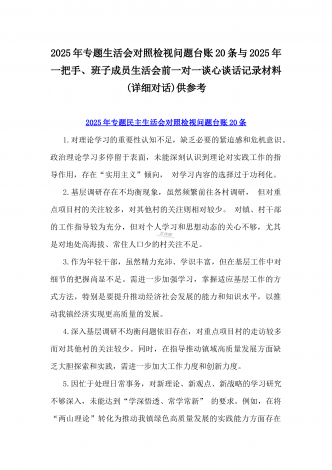 2025年一把手、领导班子成员民主生活会前一对一谈心谈话详细对话记录材料2份与2025年对照“四个带头”个人对照检查材料之今后努力方向、具体整改措施12条