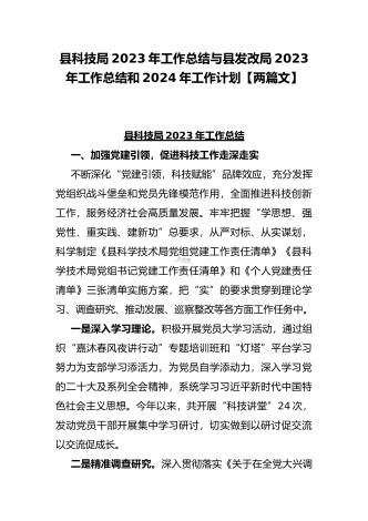 林业和草原局2023年度工作总结及2024年工作计划与县科技局2023年工作总结【两篇文】