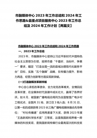 市融媒体中心2023年工作总结和2024年工作思路&县重点项目服务中心2023年工作总结及2024年工作计划【两篇文】