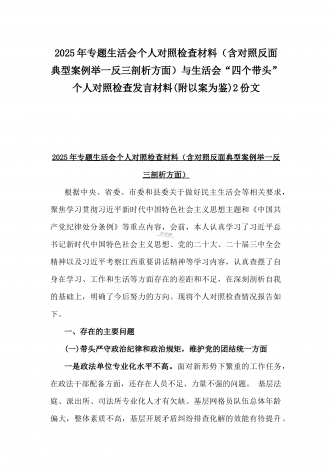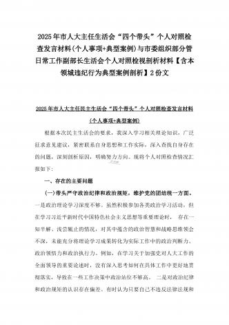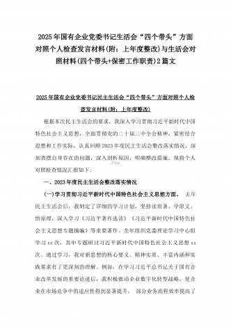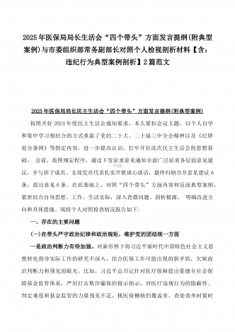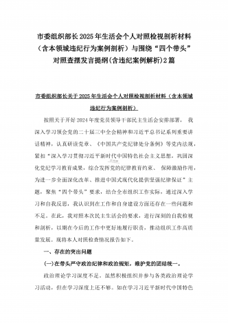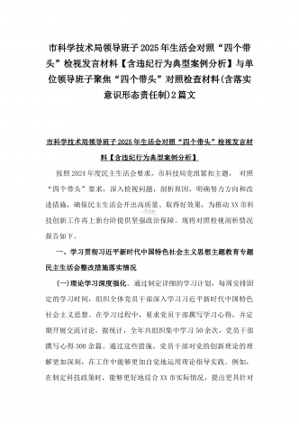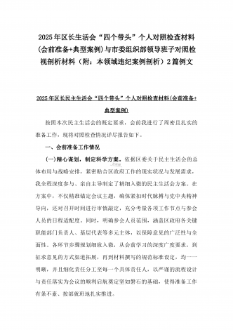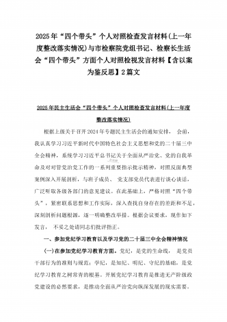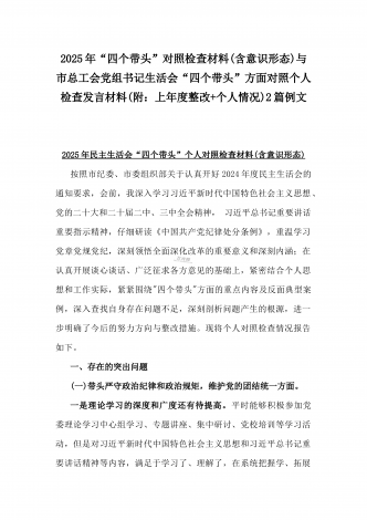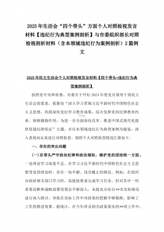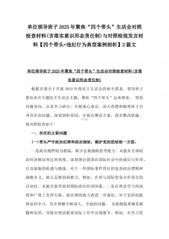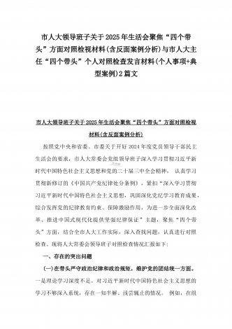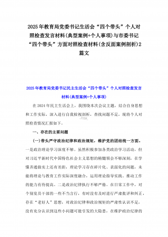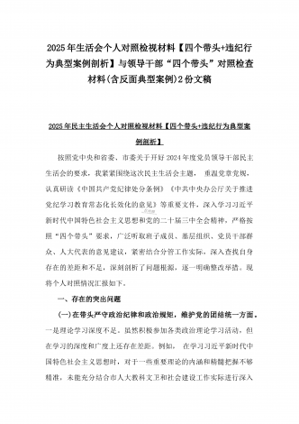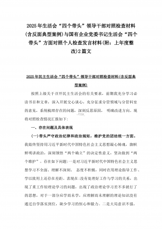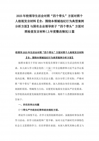 2025年校领导生活会对照“四个带头”方面对照个人检视发言材料【含:围绕本领城违纪行为典型案例分析方面】与国有企业领导班子“四个带头”方面对照检查发言材料(上年度整改情况)2篇