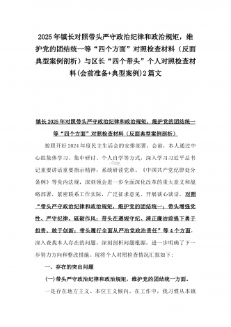 2025年校领导生活会对照“四个带头”方面对照个人检视发言材料【含:围绕本领城违纪行为典型案例分析方面】与国有企业领导班子“四个带头”方面对照检查发言材料(上年度整改情况)2篇校领导2025年生活会对照“四个带头”方面对照个人检视发言材料【含:围绕本领城违纪行为典型案例分析方面】按照市委关于开好2024年度党员领导干部民主生活会的有关要求,本人深入学习领会党的二十届三中全会精神和习近平总书记系列重要讲话精神,认真研读党章、《中国共产党纪律处分条例》等党内法规,聚焦本次民主生活会主题,结合分管工作...
