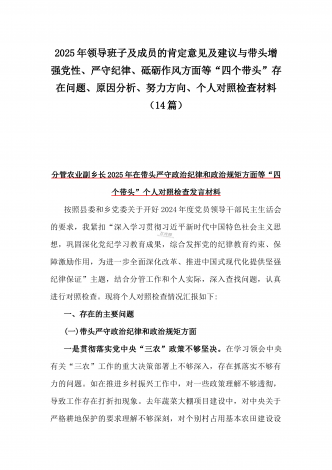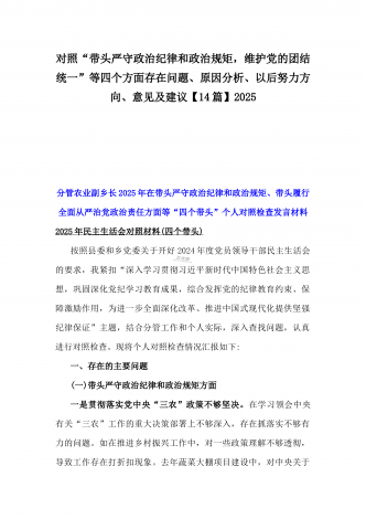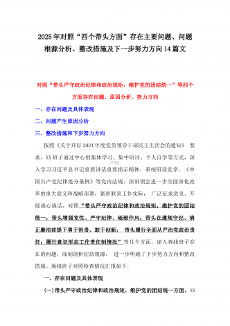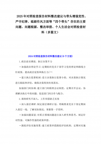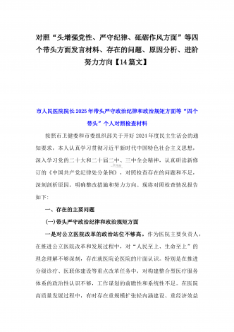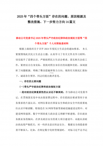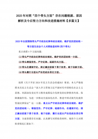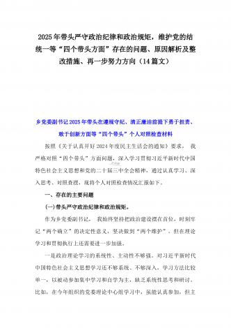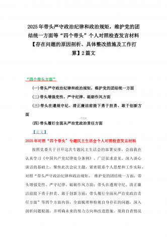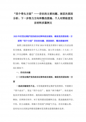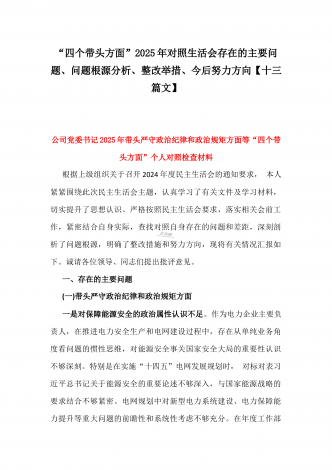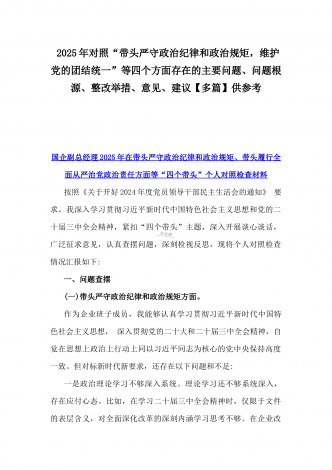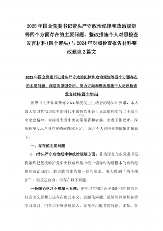 2025年国企党委书记带头严守政治纪律和政治规矩等四个方面存在的主要问题、整改措施个人对照检查发言材料(四个带头)与2024年对照检查报告材料整改建议2篇文