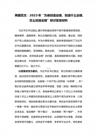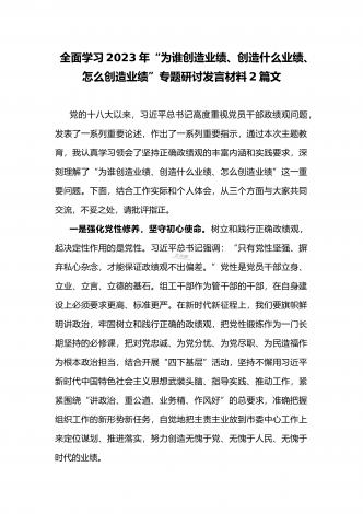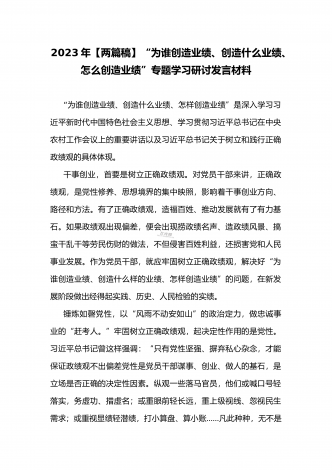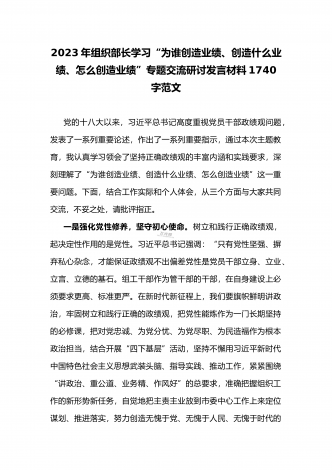 2023年组织部长学习“为谁创造业绩、创造什么业绩、怎么创造业绩”专题交流研讨发言材料1740字范文