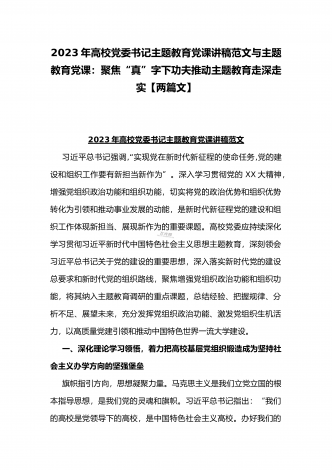 2023年高校党委书记主题教育党课讲稿范文与主题教育党课:聚焦“真”字下功夫推动主题教育走深走实【两篇文】