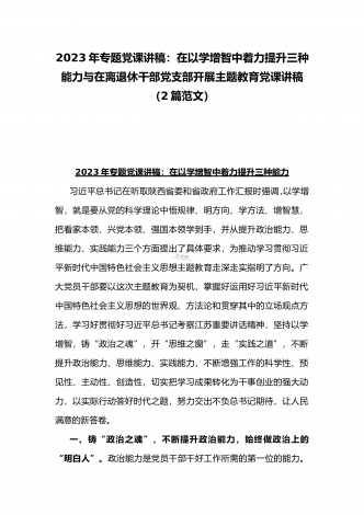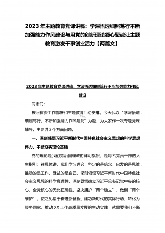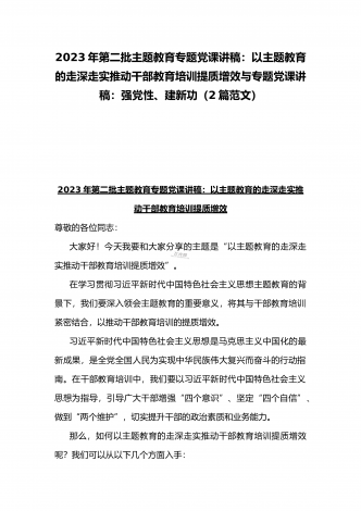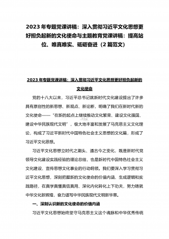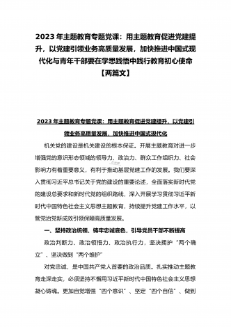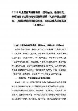 2023年主题教育党课讲稿:提高站位、唯真唯实、砥砺奋进与主题教育专题党课讲稿:扎实开展主题教育,以党建赋能深化国企改革,实现企业高质量发展(2篇范文)