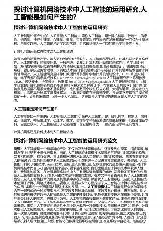 通信网络优化及运维中人工智能技术的运用,将人工智能应用于电信运营维护、网络维护、客户服务、网络后...