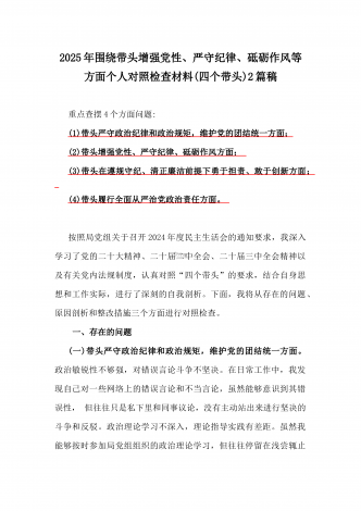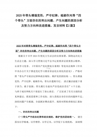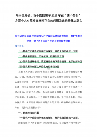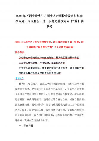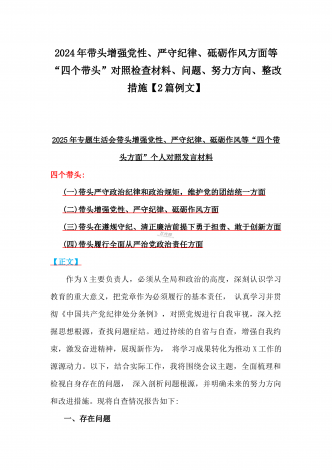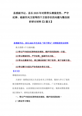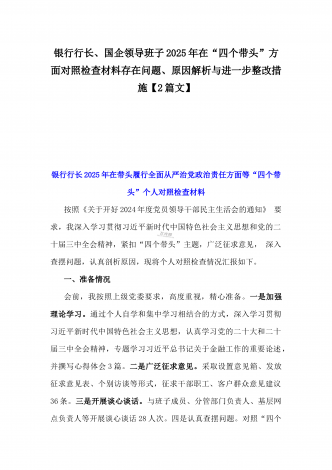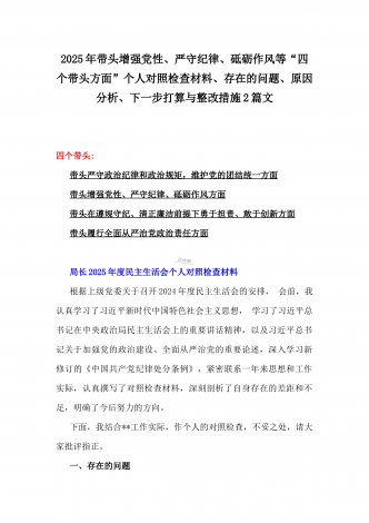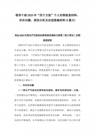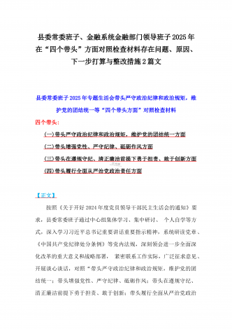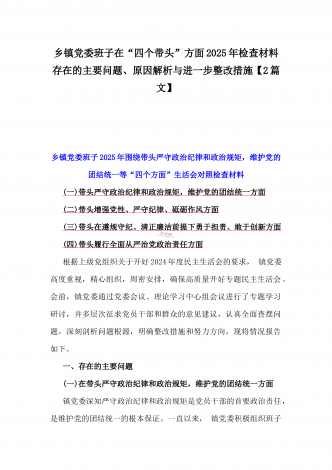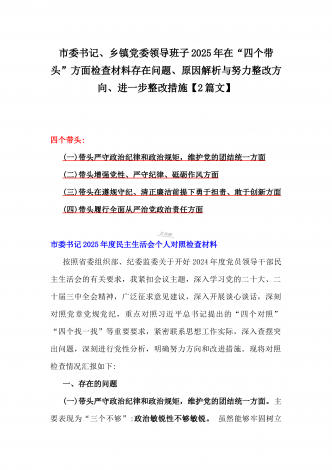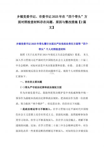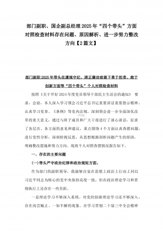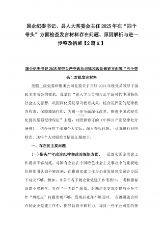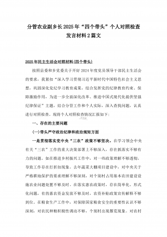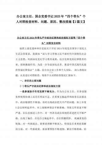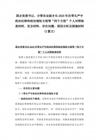 国企党委书记、分管农业副乡长2025年在带头严守政治纪律和政治规矩方面等“四个方面”个人对照检查材料、发言材料、存在问题、原因分析及措施材料(2篇文)