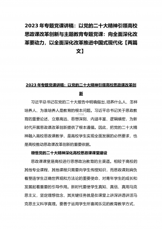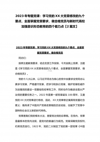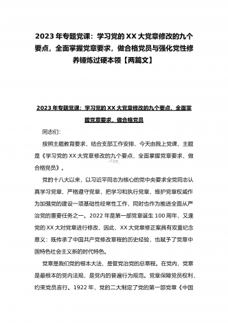 2023年主题教育专题党课:向全面深化改革要动力,以全面深化改革推进中国式现代化与专题党课:学习党的XX大党章修改的九个要点,全面掌握党章要求,做合格党员【2篇文】