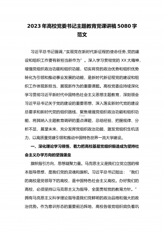 2023年高校党委书记主题教育党课讲稿5080字范文