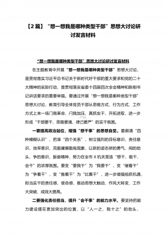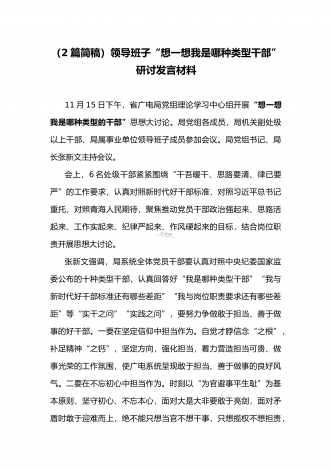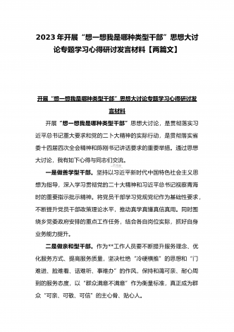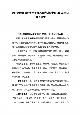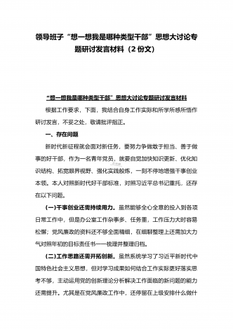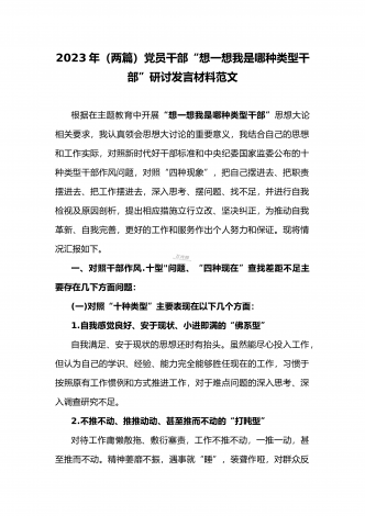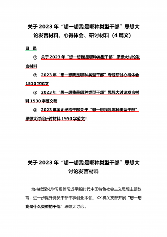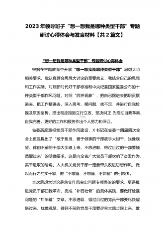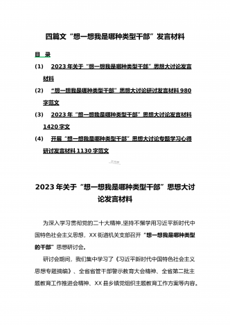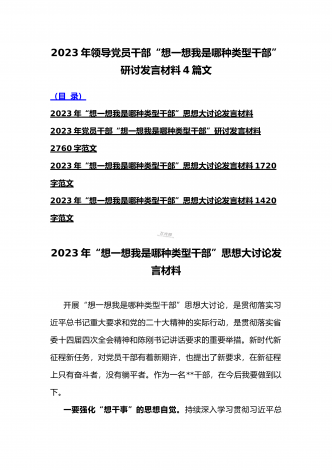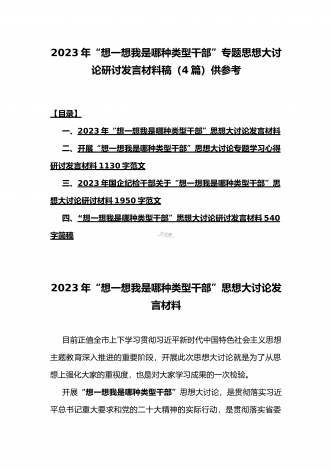 关于2023年“想一想我是哪种类型干部”思想大论发言材料、心得体会、研讨材料(4篇文)