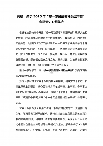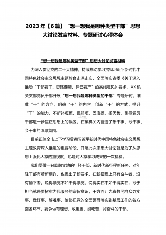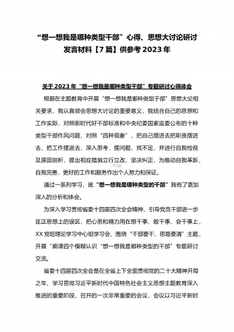 【汇编7篇文】关于2023年“想一想我是哪种类型干部”思想大讨论发言材料、心得体会、思想大讨论研讨材料