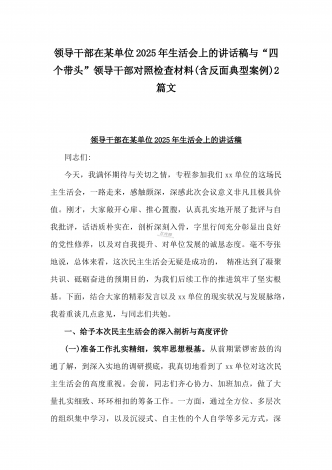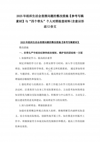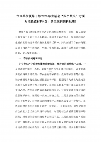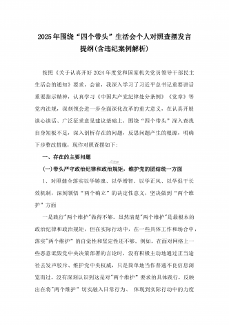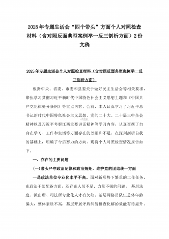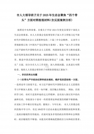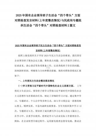 幼儿园党支部2025年组织生活会领导班子树立正确“五观”、增强“五个认同”等五个方面对照检视发言材料与国有企业领导班子“四个带头”方面对照检查发言材料2篇文