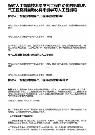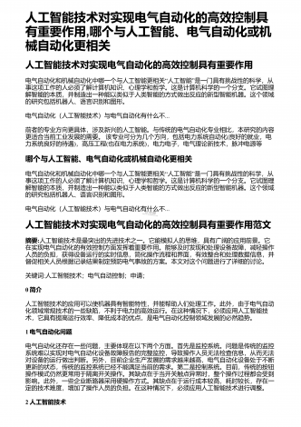 人工智能技术对实现电气自动化的高效控制具有重要作用,哪个与人工智能、电气自动化或机械自动化更相关