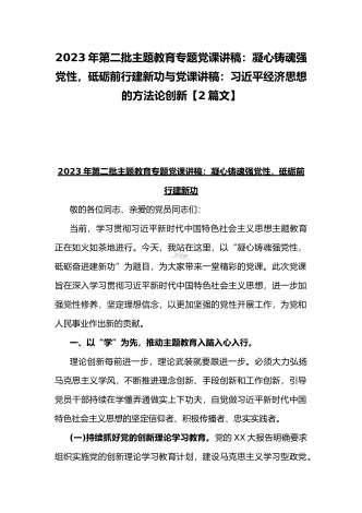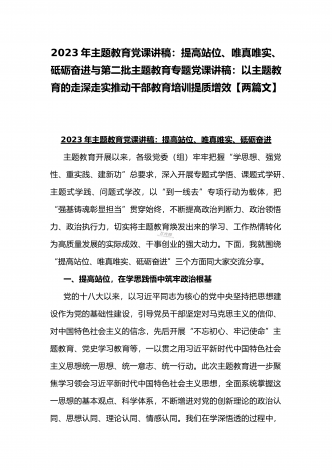 2023年第二批主题教育专题党课讲稿:以主题教育的走深走实推动干部教育培训提质增效与主题教育专题党课讲稿:用以学促干的良好成效,书写高质量发展新篇章【两篇文】