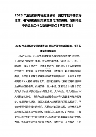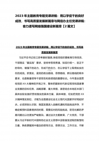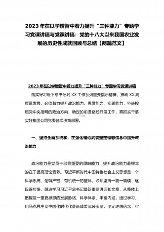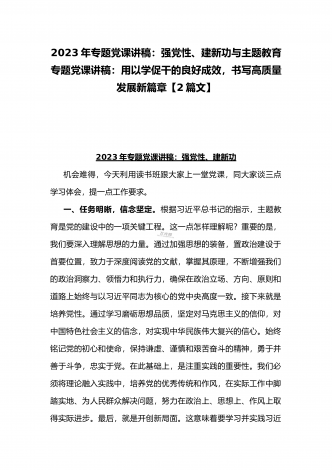 2023年专题党课讲稿:在以学增智中着力提升三种能力与第二批主题教育专题党课讲稿:以主题教育的走深走实推动干部教育培训提质增效【2篇文】