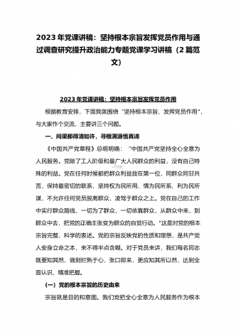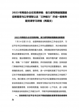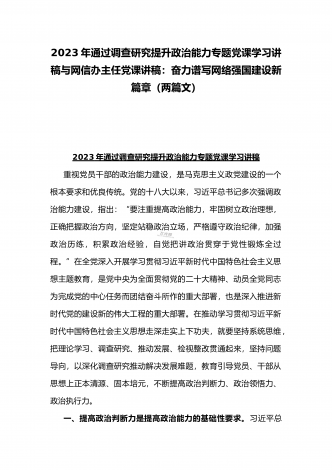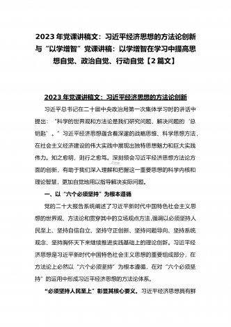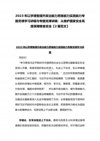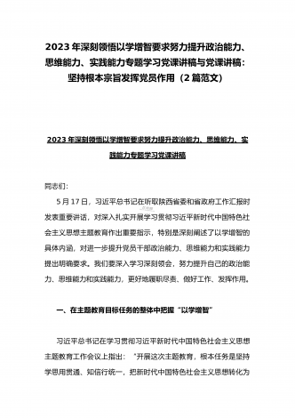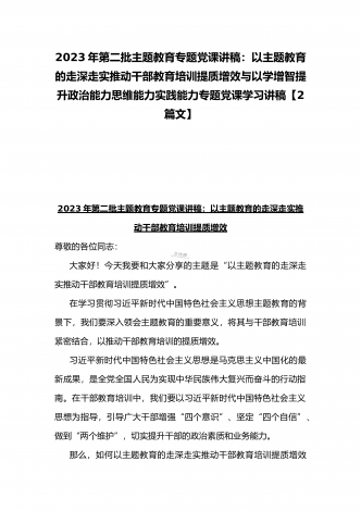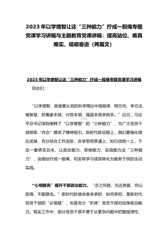 2023年主题教育专题党课讲稿:用以学促干的良好成效,书写高质量发展新篇章与在以学增智中不断提升“三种能力”即政治能力、思维能力、实践能力专题学习党课讲稿【2篇文】
