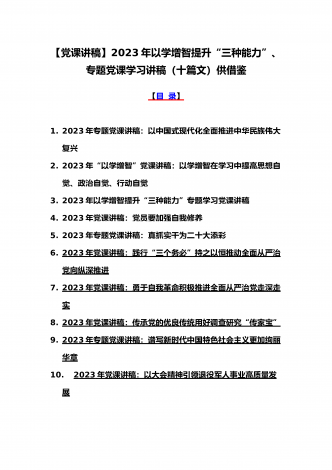 2023年在以学增智中不断提升“三种能力”即政治能力、思维能力、实践能力专题学习党课讲稿与第二批主题教育专题党课讲稿:以主题教育的走深走实推动干部教育培训提质增效【2篇文】2023年在以学增智中不断提升“三种能力”即政治能力、思维能力、实践能力专题学习党课讲稿同志们:近日,习近平总书记在西安听取陕西省委和省政府工作汇报时强调,以学增智,就是要从党的科学理论中悟规律、明方向、学方法、增智慧,把看家本领、兴党本领、强国本领学到手。习近平总书记在讲话中深刻阐述了“以学增智”的重要内涵,明确提出了一系列...