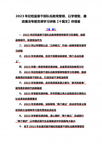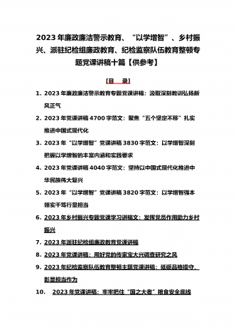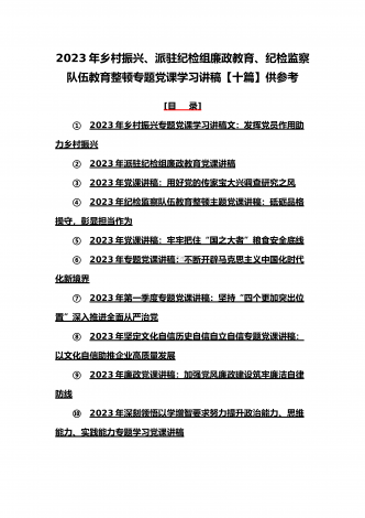 (党课学习讲稿)2023年乡村振兴、派驻纪检组廉政教育、纪检监察队伍教育整顿专题党课讲稿10篇【附:坚定文化自信历史自信自立自信专题讲稿】供参考