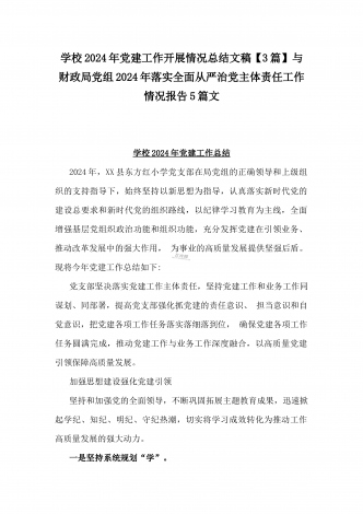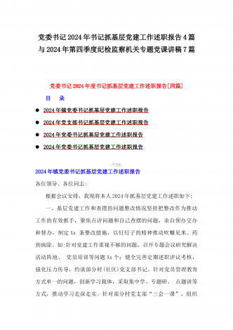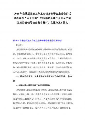 2025年在基层党建工作重点任务部署会推进会讲话稿3篇与“四个方面”2025年带头履行全面从严治党政治责任等检查发言材料、实施方案8篇文