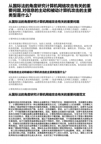 从国际法的角度研究计算机网络攻击有关的重要问题,对信息的主动和被动计算机攻击的主要类型是什么?