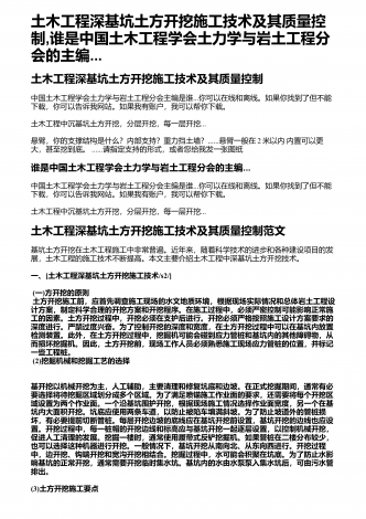 土木工程深基坑土方开挖施工技术及其质量控制,谁是中国土木工程学会土力学与岩土工程分会的主编...