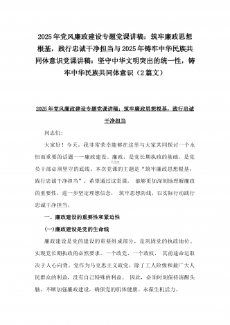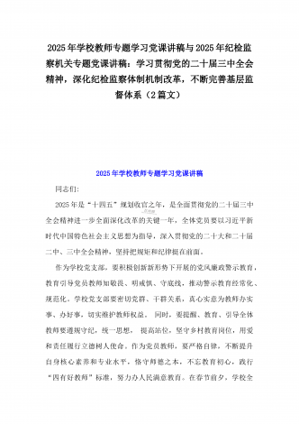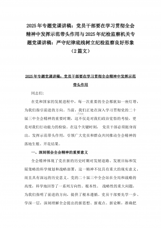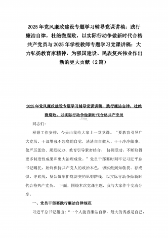 2025年党风廉政建设专题学习辅导党课讲稿:践行廉洁自律,杜绝微腐败,以实际行动争做新时代合格共产党员与2025年学校教师专题学习党课讲稿:大力弘扬教育家精神,为强国建设、民族复兴伟业作出新的更大贡献(2篇)