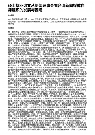 硕士毕业论文海峡两岸电视情感访谈节目对话——“”“分析的比较研究以艺术生活和真情指”数为例论文概述:本文是GCT在职硕士论文,本文通过会话分析工具对《艺术人生》和《真情指数》两档节目进行比较研究,探究它们在开端主体结尾部分、局部会话结构、主持人风格等方面的异同。论文正文:第一章导言1.1主题选择的起源台湾比美国离大陆更远。这里的距离不是指空之间的距离,而是指大陆和台湾之间的距离,台湾是一片水域,有着相同的起源和文化。由于政治原因和价值观的差异,隔阂太深,误解太多。尽管双方已经打破僵局好几年了,但...