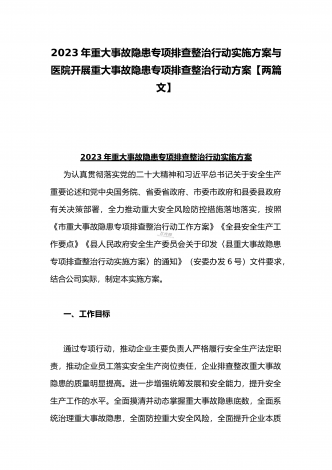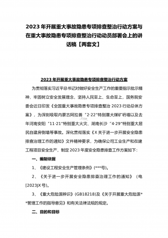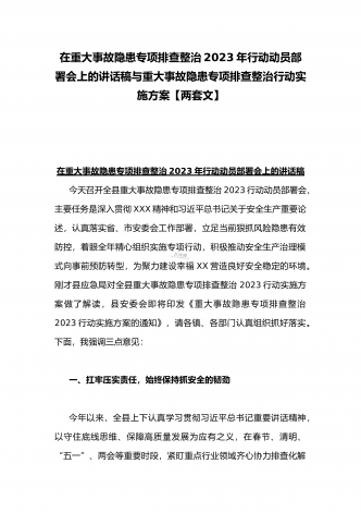 2023年开展重大事故隐患专项排查整治行动方案与在重大事故隐患专项排查整治行动动员部署会上的讲话稿【两套文】
