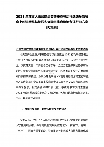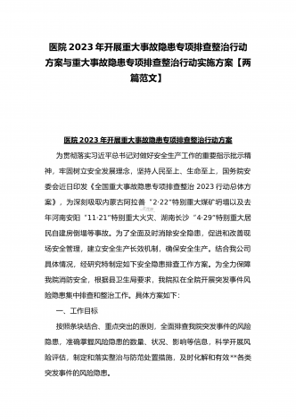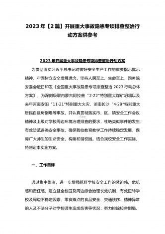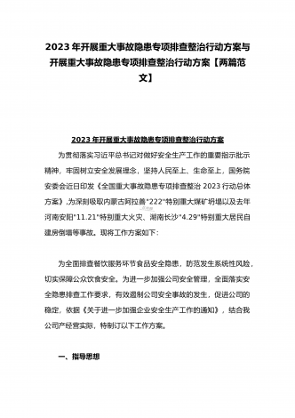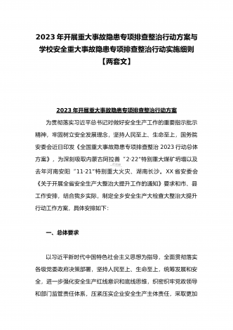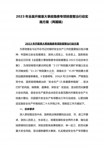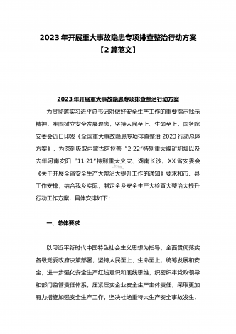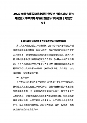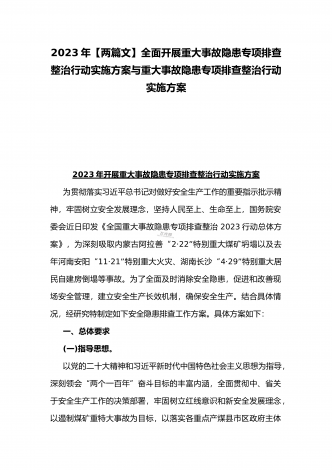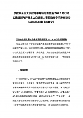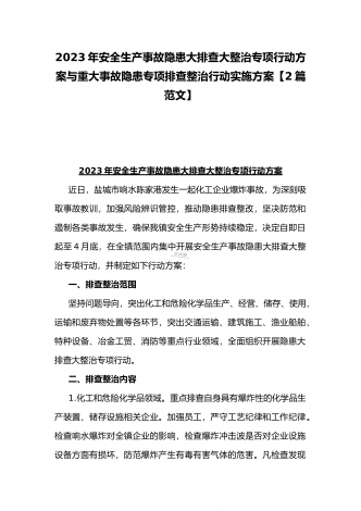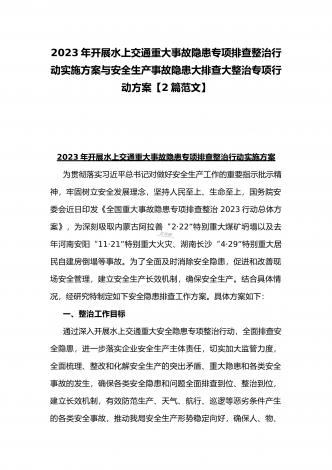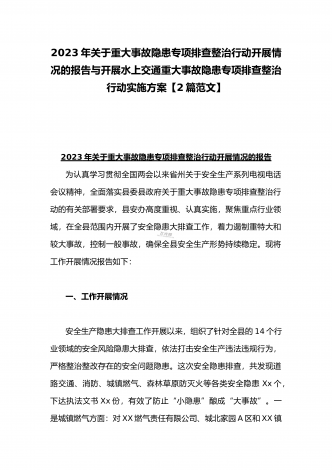 2023年关于重大事故隐患专项排查整治行动开展情况的报告与开展水上交通重大事故隐患专项排查整治行动实施方案【2篇范文】