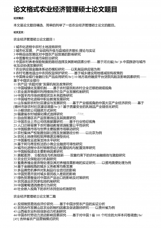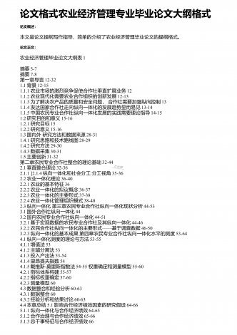 3658字论文格式农业经济管理专业毕业论文大纲格式