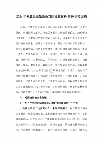 幼儿园党支部2025年组织生活会领导班子树立正确“五观”、增强“五个认同”等五个方面对照检视发言材料6520字文按照开好2024年度组织生活会的安排部署,会前,党支部班子通过个人自学和集体学习,深入学习领会习近平总书记重要讲话重要指示精神,认真学习党章、《条例》等党内法规,深刻领会进一步全面深化改革的重大意义,通过与班子成员和广大教师、党员进行了谈心谈话,征求了各方面的意见和建议,重点围绕“四个带头”和筑牢中华民族共同体意识等5个方面,紧密结合幼儿园工作实际,认真查摆问题,进行党性分析,深刻检视...