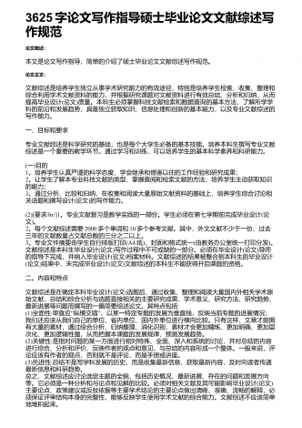 3625字论文写作指导硕士毕业论文文献综述写作规范