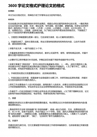 3600字论文格式护理论文的格式论文概述:本文为论文格式范文,简单的介绍了护理专业论文的写作格式。论文正文:在总结通过科学实践获得的科学研究成果后,根据论点和论据写的有争议的文章。一篇优秀的论文应内容丰富、新颖、科学、理论实用、写作流畅、层次清晰、逻辑性强。科研论文的写作格式一般包括以下内容:①标题;(2)作者;(3)总结;(4)关键词;(5)导言;⑥文本(材料、方法、结果和讨论);⑦致谢;⑧参考文献。为了使论文的写作更加规范和格式化,下面描述了这八个项目的写作要求和需要注意的问题。1。主题是文...