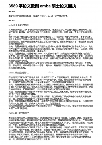 3589字论文致谢emba硕士论文回执论文概述:本文是论文致谢写作指导,简单的介绍了emba硕士论文致谢格式。论文正文:emba硕士论文致谢表1吉大管理学院EMBA专业的学习生涯即将结束。我想把这份文件送给所有在吉林大学学习期间在学术上教过我、在生活中帮助过我的老师、同学和朋友。吉林大学一直是我深造的理想大学。我不仅听取了目前最先进的管理专家的学术论证,还出国学习了顶尖大学的第一手专业标准,进入企业学习了优秀企业的管理经验,真是卓有成效。在这里,我要向所有的老师表示深深的感谢和敬意。我很幸运在吉...