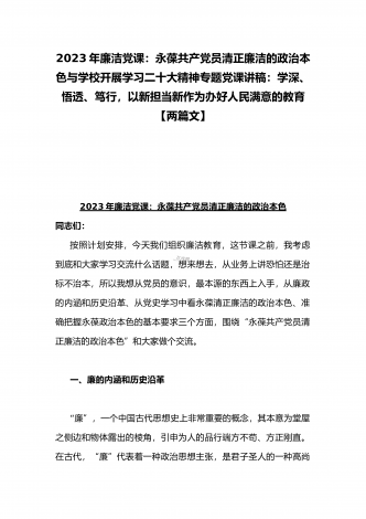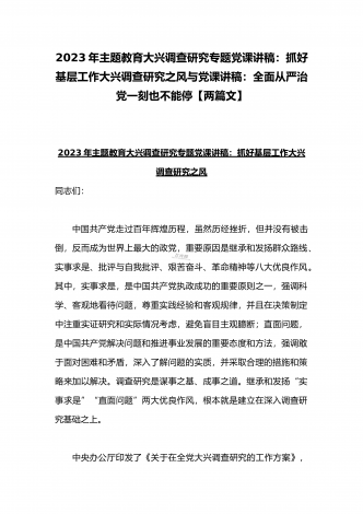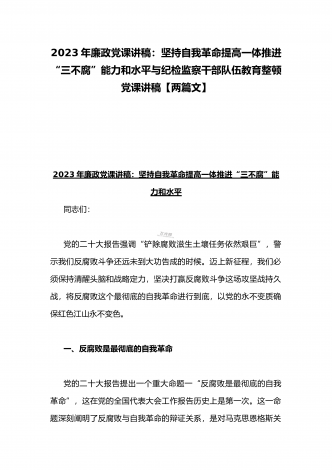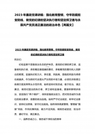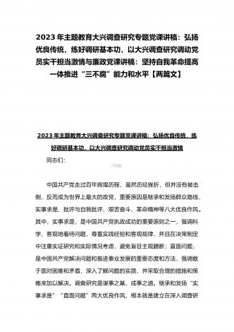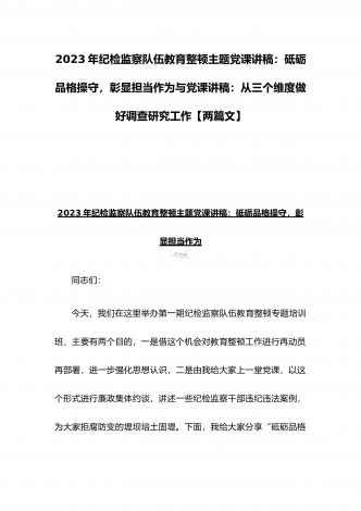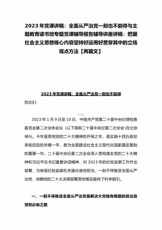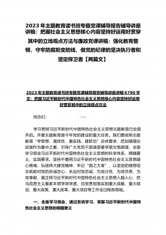 2023年主题教育读书班专题党课辅导报告辅导讲座讲稿:把握社会主义思想核心内容坚持好运用好贯穿其中的立场观点方法与廉政党课讲稿:强化教育整顿,守牢防腐拒变防线,做党的纪律的坚决执行者和坚定捍卫者【两篇文】