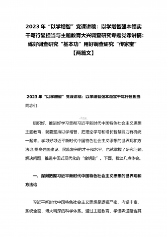 2023年主题教育读书班专题党课辅导报告辅导讲座讲稿:把握社会主义思想核心内容坚持好运用好贯穿其中的立场观点方法与廉政党课讲稿:强化教育整顿,守牢防腐拒变防线,做党的纪律的坚决执行者和坚定捍卫者【两篇文】2023年主题教育读书班专题党课辅导报告辅导讲座讲稿6790字文:把握习近平新时代中国特色社会主义思想核心内容坚持好运用好贯穿其中的立场观点方法同志们:学习贯彻习近平新时代中国特色社会主义思想主题教育已全面开启。开展主题教育是今年党的建设的重大任务。我们要按照主题教育“学思想、强党性、重实践、建...