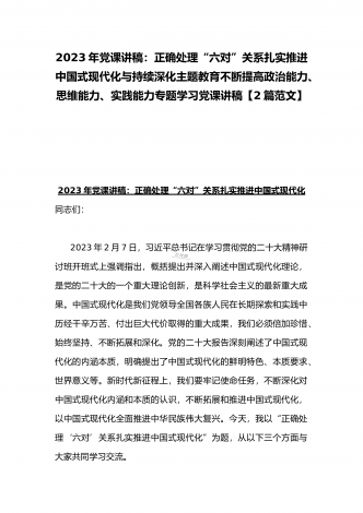 2023年主题教育专题党课学习讲稿:习近平新时代中国特色社会主义思想的重大意义与公司党委书记在2023年主题教育工作会议主题教育读书班上的讲话稿党课讲稿【2篇范文】2023年主题教育专题党课学习讲稿:习近平新时代中国特色社会主义思想的重大意义同志们:4月3日,学习贯彻习近平新时代中国特色社会主义思想主题教育工作会议在北京召开。中共中央总书记、国家主席、中央军委主席习近平出席会议并发表重要讲话。他强调,强国建设、民族复兴的宏伟目标令人鼓舞、催人奋进,我们这一代共产党人使命光荣、责任重大。我们要以这...