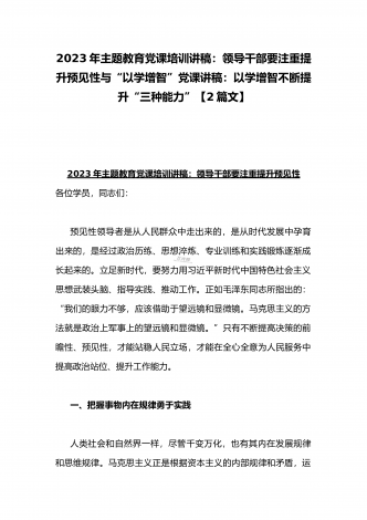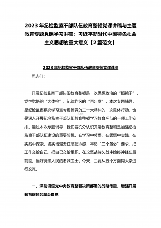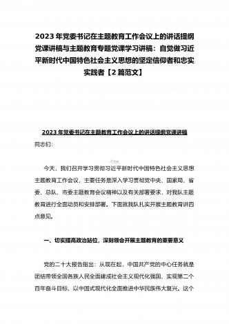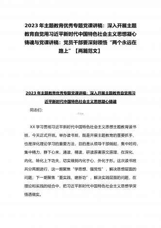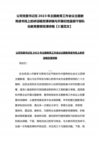 2023年主题教育专题党课学习讲稿:习近平新时代中国特色社会主义思想的重大意义与公司党委书记在2023年主题教育工作会议主题教育读书班上的讲话稿党课讲稿【2篇范文】