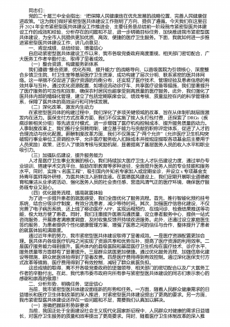 尊敬的各位领导,同志们: 今年2至7月,x市选取x市委、x市委、市发改委党组、市城市监督管理局党组、市人民医院党委、x能源集团党委等6个部门作为试点,分类别、分领域、分层级开展增强对党委“”(党组)落实三重一大决策制度监督实效试点工作,并把制度建设和执行作为重点,主要围“”绕党委(党组)在落实三重一大决策制度工作中存在的事项界定不清晰、运行机制不规范、约束管理不完善、监督落实不到位等4个方面突出问题和薄弱环节,探索实践增强监督实效的12“”项制度机制,进一步完善了对一把手和领导班子监督配套...