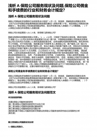 浅析A 保险公司服务现状及问题,保险公司佣金和手续费的行业和财务会计规定?
