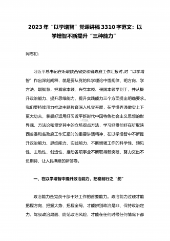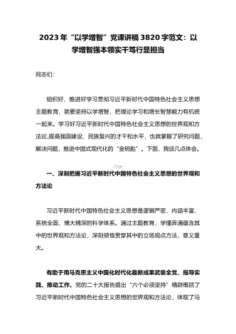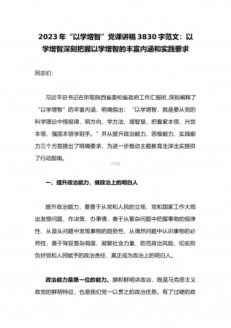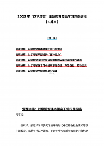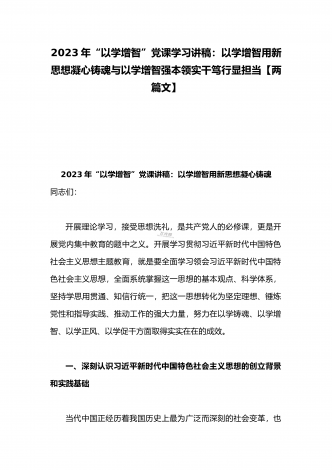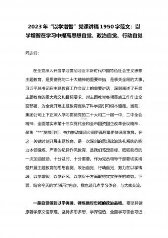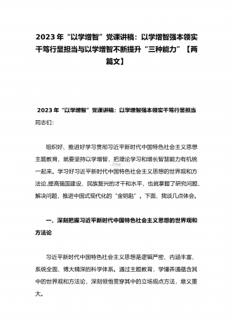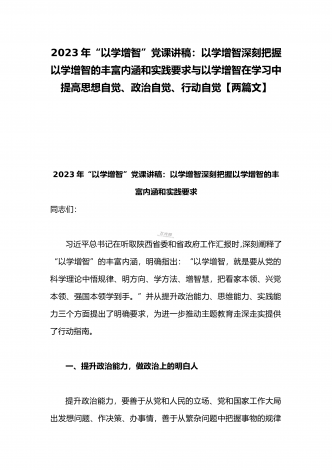 2023年“以学增智”党课讲稿:以学增智深刻把握以学增智的丰富内涵和实践要求与以学增智在学习中提高思想自觉、政治自觉、行动自觉【两篇文】