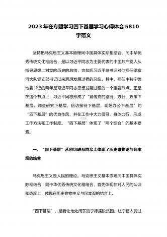 单位党组中心组2023年学习践行四下基层的讲话提纲1930字文:“四下基层”在新时代彰显巨大时代价值和强大生命力