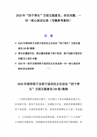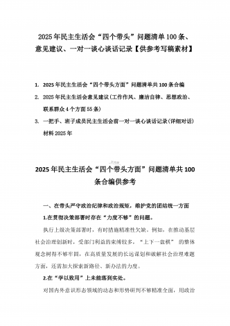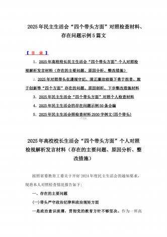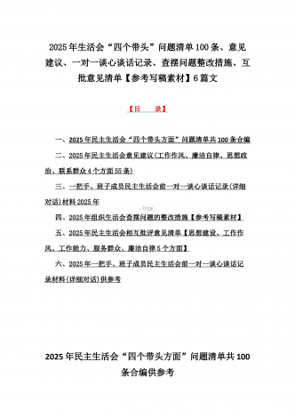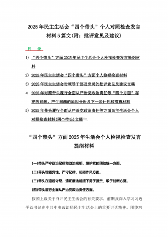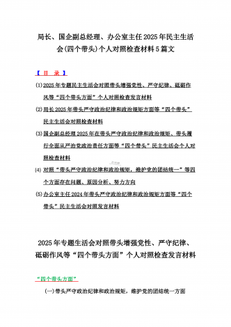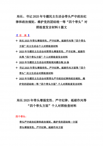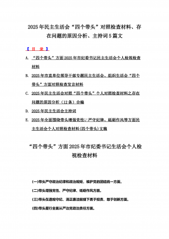 乡镇党委书记、移动公司党委书记、乡镇党委书记、县委副书记、县长、市总工会党组书记2025年民主生活会(四个带头)个人对照检查材料5篇文【目录】1.2025年乡镇党委书记民主生活会“四个带头”对照检查材料(含案例剖析)2.移动公司党委书记2025年带头严守政治纪律和政治规矩方面等“四个带头方面”民主生活会个人对照检查材料3.乡镇党委书记2025年带头履行全面从严治党政治责任方面等“四个带头”民主生活会个人对照检查材料文4.县委副书记、县长2025年民主生活会“四个带头”对照检查发言材料文稿5.市总...