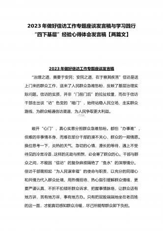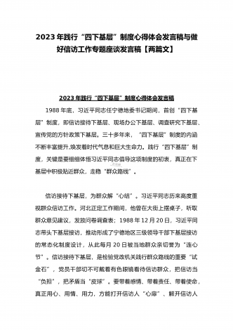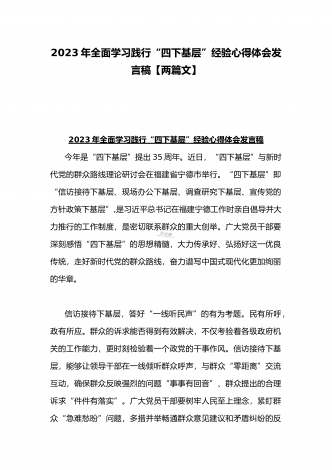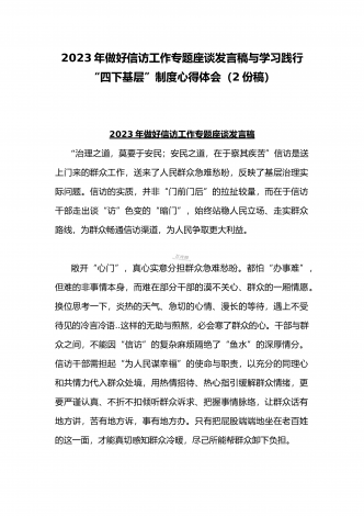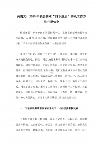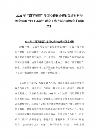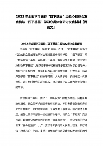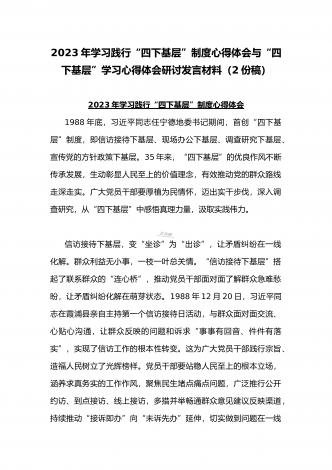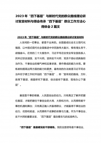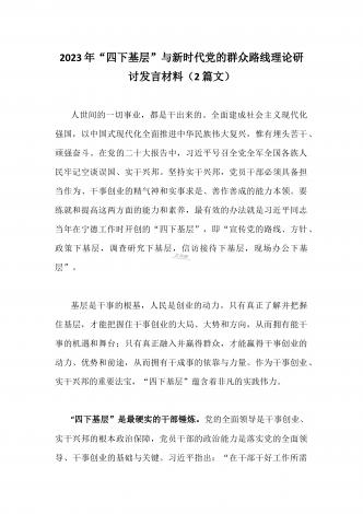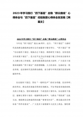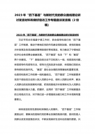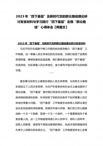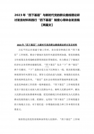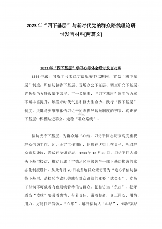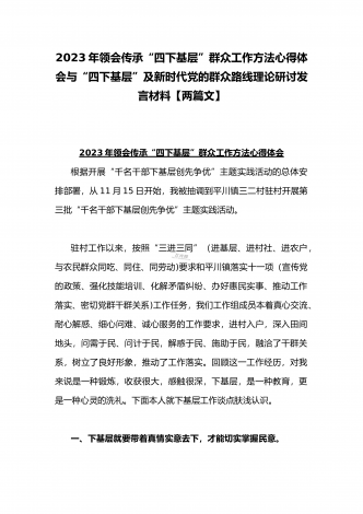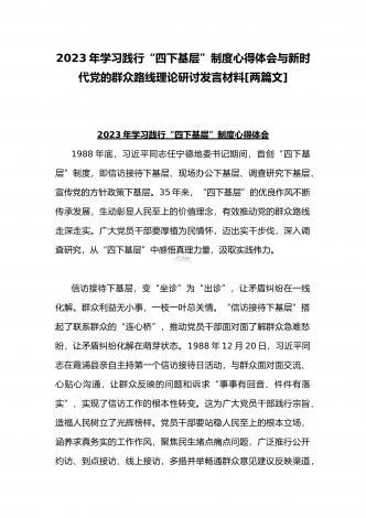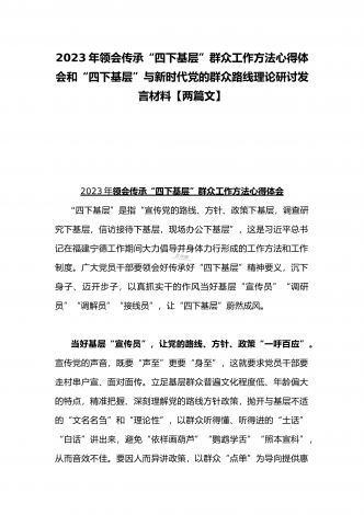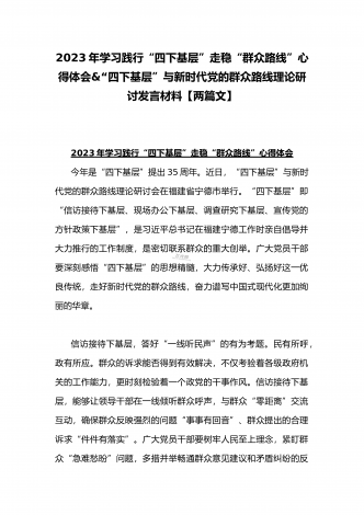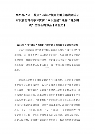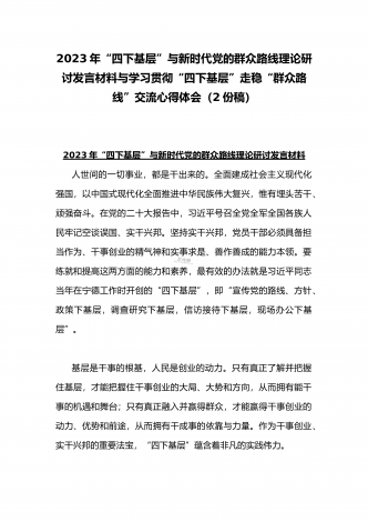 2023年“四下基层”与新时代党的群众路线理论研讨发言材料与学习贯彻“四下基层”走稳“群众路线”交流心得体会【两篇文】